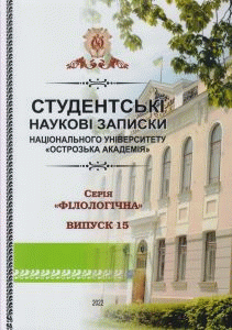 Студентські наукові записки Національного університету "Острозька академія". Серія "Філологічна" збірник наукових праць редкол. : А. О. Худолій, І. В. Ковальчук Вип. 15