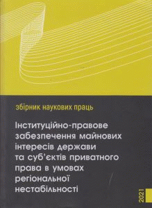Інституційно-правове забезпечення майнових інтересів держави та суб'єктів приватного права в умовах регіональної нестабільності збірник наукових праць за заг. ред. Олександра Крупчана