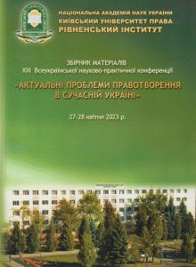Актуальні проблеми правотворення в сучасній Україні збірник матеріалів ХІІІ Всеукраїнської науково-практичної конференції редкол. : Ю. Л. Башицький, І. В. Вєтров, Р. В. Перелигіна та ін.