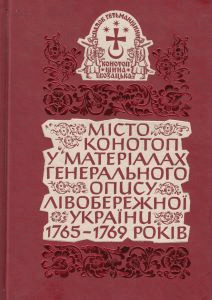 Зведення: У виданні вперше публікуються документи генерального опису Лівобережної України 1765–1769 рр. у частині, присвяченій місту Конотоп Конотопської сотні Ніжинського полку. Матеріали опису містять цінні відомості про соціально-економічні відносини, господарства, чисельність, вік, походження та родинні зв’язки населення цього мікрорегіону Гетьманщини. до першої книги увійшли документи, що стосуються козацької старшини та духовенства.